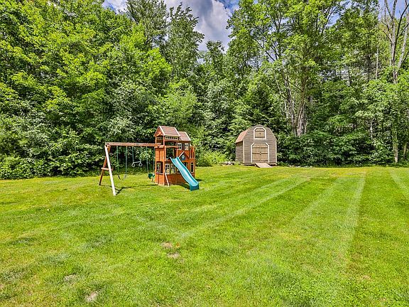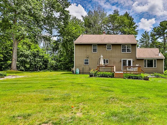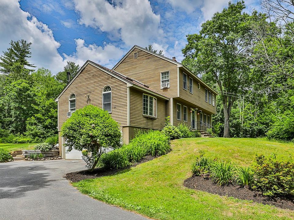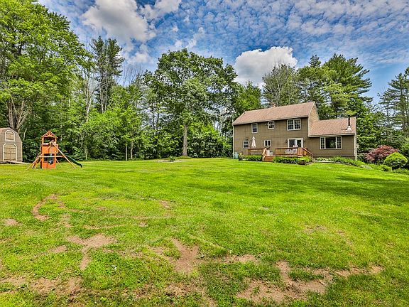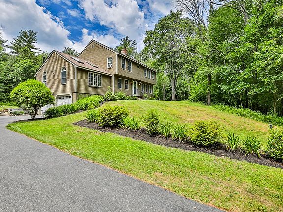 A beautiful home on a picturesque 3 acre lot in Derry, NH. This spacious home is set back from the road and has a large sun-filled backyard. Perfect for outdoor entertaining, play, or for a garden to thrive. Chefs and entertainers will love the exceptional work space in the kitchen. Large center island, beverage fridge, and 3 yo stainless appliances. Off the kitchen is a formal dining room with trendy shiplap walls. Large family room with tons of natural light, cathedral ceilings, crown molding, and a wood stove. First floor office, play room, or flex space has glass doors allowing for privacy and quiet. Completing the 1st floor is a spacious half bath with laundry (w+d included) strategically tucked away as well as a huge linen closet or pantry. Upstairs, you'll find 4 b/r's and 2 baths. The beautiful primary suite has a cathedral ceiling, stunning white board + batten walls, sky lights, and a walk-in closet. Luxurious primary bath with walk-in tiled shower and a granite topped vanity. Walk up attic makes storage easy and provides the possibility of future expansion. This home is spacious, yet cozy, highly functional, and has the space to grow and expand. Quick close possible.