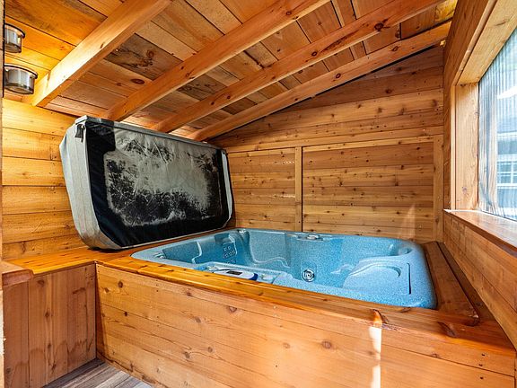 Rooftop deckHot tub enclosureOpen loft areaRecently built outdoor barAbutting preservation land