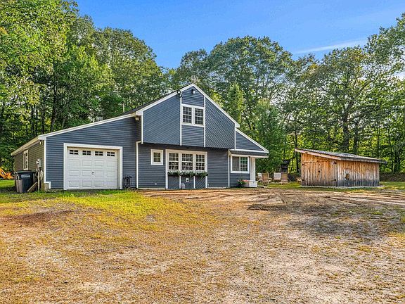 Looking for a serene setting ? This unique home located on 2+ acres offers a multitude of uses , need an inlaw set up ? first floor bedroom and bath ? The spaces you can use for work at home/ entertaining / or just relaxing in your own retreat are plentiful . The second level offers a primary BR w/ two walk in closets and access to a full bath with a great soaking tub and an open loft area which provides access through glass doors to the rooftop deck and views of the yard and gardens and a lovely sunfilled 3rd Bedroom . Enjoy the recently built outdoor bar with hot tub enclosure and for the craftsman a fantastic workshop w/ power and storage ...plenty of parking for boats/ RV and vehicles, minutes from shopping and easy access to commuter routes . This is not a cookie cutter home, come see it to appreciate the versatility and peaceful setting abutting preservation land ..Won't last ! New septic system being installed currently.