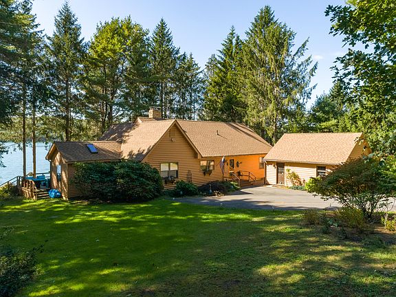 Nestled in a stately grove of evergreens on the banks of the Sheepscot River, this westerly facing home offers magnificent water views, dramatic sunsets and comfortable year 'round living. Rustic log siding combines beautifully with a contemporary floor plan that includes a spacious kitchen, front to back dining area and living room with a massive wood burning fireplace, cozy den, and a four season sunroom with glorious water views. The primary bedroom, conveniently located on the first floor, has an ensuite bath including double sinks, a soaking tub and separate shower. A guest bedroom as well as full bath and laundry are also located on the first floor. The second floor accommodates a second guest bedroom, bath and extensive storage space.