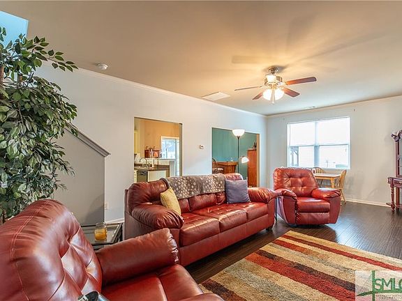 Consider this attractive stone-faced home with expansive lagoon view in Pooler's popular and convenient Savannah Quarters neighborhood of Hamilton Grove. While located within 2 miles of I-16, I-95, and all that Pooler has to offer, the home remains just on the outskirts of Savannah. Inside, hardwood floors run throughout the living and dining areas. The kitchen opens to the living room and offers antiqued cabinets, custom tile backsplash, sleek black appliances, and pantry. The upper level hosts a loft and all three bedrooms. A large owner's suite overlooks the lagoon, and it's bath boasts a garden tub, separate shower and walk-in closet. The laundry room is also conveniently located upstairs. Finally, the screen porch with cathedral ceiling provides a great spot to enjoy the outdoors and gorgeous lagoon view. The pool, clubhouse and playground are less than one block away, offering a great way to meet your neighbors. Furnishings are negotiable and property is NOT in a flood zone!