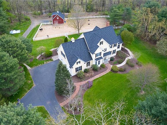One of Granby's most admired horse properties This STUNNING Colonial is admired for its curb appeal, exterior design and lovely landscaping. This beautiful peaceful setting abuts Salmon Brook, town owned land and trails to Mcleans Game Refuge This tranquil park-like setting offers a custom built barn with 3 stalls, tack room, hay loft, electric and water. This home is as beautifully maintained inside as it is outside. Elegant yet inviting living spaces throughout. The well appointed gourmet granite kitchen with double ovens, center island and butlers pantry opens to the family room with gas fireplace and also leads to the large dining room. Off the Kitchen is a new trek deck overlooking the paddock. Work at home? You will love the private, sun-drenched first floor office. The second level hosts 4 great sized bedrooms including the primary suite with a luxurious bath, double sinks, tile shower, and jacuzzi, there 2 bedrooms connected by a Jack & Jill bath & the 4th bedroom enSuite. The finished walk-out lower level provides an additional 1000+ sqft. New roof & some features are a second flr laundry rm, mudroom, C/air, c/vac. sprinkler system, & more. Whether it be horses, small animals, cars, hobbies, this property has the space to accommodate your dreams. Its conveniently located to town center and shopping, minutes away from important commuter routes & Bradley International Airport. This is a unique property, a nature lover's delight--see it today and make it yours