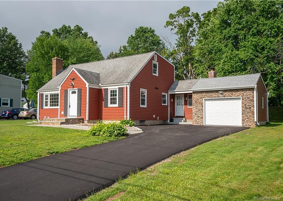 This adorable Cape has such beautiful Curb appeal, you will be smiling from the minute you arrive! The 3/4 bedroom, 2 bath home has been remodeled throughout! Starting with a brand new paved driveway to a newly built one car attached garage, it just keeps getting better! When you enter, you will be delighted to find a large family room with a brick fireplace and wood floors that leads you to a large deck overlooking a very peaceful backyard with stone firepit. The floor plan is flexible and allows for dining in this back room if preferred. This house includes vinyl siding, newer roof, oil heat, thermopane windows, two stunning bathrooms up and down, and a first floor bedroom. The formal dining room includes a closet and has been used as an occasional 4th bedroom. This fabulous new white kitchen has everything a home buyer would want, including granite countertops, stainless appliances, and is open to the family room! The formal living room has a stunning fireplace with stone surround and a large window that fills the room with natural sunlight. Other features include first floor laundry, a partially finished lower level and a firepit.