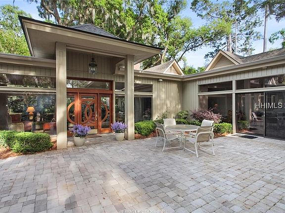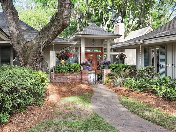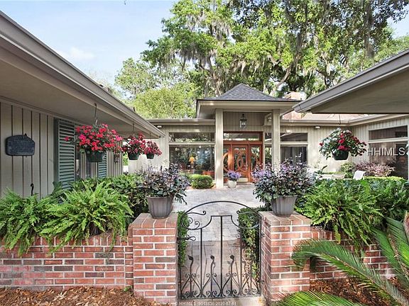 Baynard Park is a premier location in Sea Pines! One level living with views of #14 and #13 on HT. Imagine two full size lots, offering expansive tee to green views of the famous par 3 14th hole of HT AND gorgeous unobstructed views of Calibogue Sound from the front! Over 5200 square feet of charm and comfort, all on one level, from gated front courtyard thru the entire home! Newer eat in kitchen opens up to beautiful family room with tray ceiling; 3 FP, formal LR and DR, sophisticated and cozy den/office along with 4 large BR and 4 1/2 baths! High, smooth ceilings. Pool with waterfall surrounded by mature Camellias. A Sea Pines "Classic"!