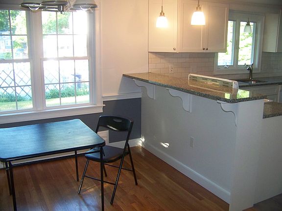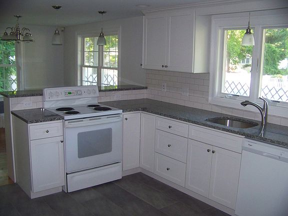 This sprawling 62' ranch has been beautifully and tastefully renovated (2016) with a new kitchen offering today's design including granite counters and breakfast bar, white cabinetry and subway tile back splash. Gleaming hardwood, original to the home was refinished with some new hardwood added leading to the master bedroom to complete the flow of perfection. Master bedroom suite was transformed from an original one car garage with thoughtful accent sconces over bed, a walk in closet and a full bath with granite vanity and beautiful tile flooring. The spacious living room offers brick wood burning fireplace with an easy flow to the kitchen and dining area. The heated lower level offers additional space with a second wood burning fireplace; ideal for family room, game room or quiet getaway. Fully fenced in yard in ideal location close to town, shopping, high school, commuter rail & major roadways.Too many updates to list..see attached highlight sheet