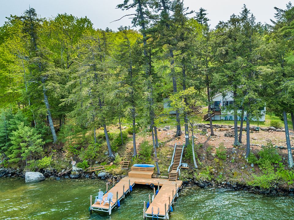 Spacious, welcoming, Bear Island Cottage with 2 spacious bedrooms, 2 large lofts, an amazing screen porch, covered deck for grilling, full bath, washer and dryer, wood stove, and gas range. new roof installed summer of 2019. This home has everything you need to comfortably enjoy your family and friends on "Island Time". Spacious and comfortable sleeping for 11 people or more, 200' of water frontage with U shaped seasonal dock on 2.62 acres with a state approved septic system. Relax and enjoy the incredible views to the mountains while sitting around the large fire pit. The home boasts a large, flat, grassy yard for outdoor recreation, something not typically found on an island property. Water is pumped from the lake and there is a spring fed well to add charm. The over-sized shed could easily be converted into a bunk house. Bear Island is conveniently located close to the mainland and has wonderfully maintained hiking trails easily accessed from the property. Desirable Bear Island homes like this don't become available often. Make this the island vacation home you have been dreaming of.