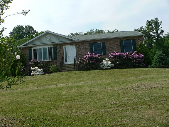 Solid brick front rancher sitting peacefully on 2 acres in small community with no HOA. 3 car detached garage with electric, perfect for RV's or workshop, 2 sheds. Nearly new flooring on entire main level. Finished lower level rec room, plenty of room for storage or play. Owners loss is your gain. Come check it today, you'll be glad you did.
