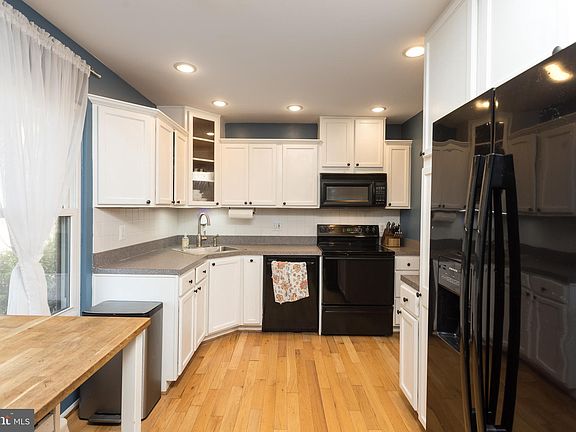 Welcome to this charming end-of-group townhouse located in the Seven Courts Community, offering around 2,000 square feet of comfortable living space across three finished levels. Situated next to a wooded area, this 3-bedroom, 2 full and 2 half bath home provides the perfect blend of convenience and serenity. The main level boasts hardwood floors, and a spacious kitchen with abundant cabinet space, a separate dining room. The inviting living room features a cozy wood-burning fireplace, a slider that opens to a large 22x12 deck, ideal for outdoor dining and entertaining, overlooking the fenced-in level backyard. Upstairs has LVP flooring throughout, the primary bedroom offers a private bath, and a walk-in closet. Two additional generously sized bedrooms, all equipped with ceiling fans, share a well-appointed second full bath. The lower level offers even more space with an open family room featuring LVP flooring, a second fireplace with an electric insert, a convenient half bath, and a slider leading to the rear patio. The laundry/utility room completes this level, providing additional storage and functionality. Conveniently located near commuter routes, shopping, dining, and entertainment, this home combines modern comfort with a prime location. Recent updates include the front storm door in 2024, rear slider to the deck in 2021 and roof in 2018.