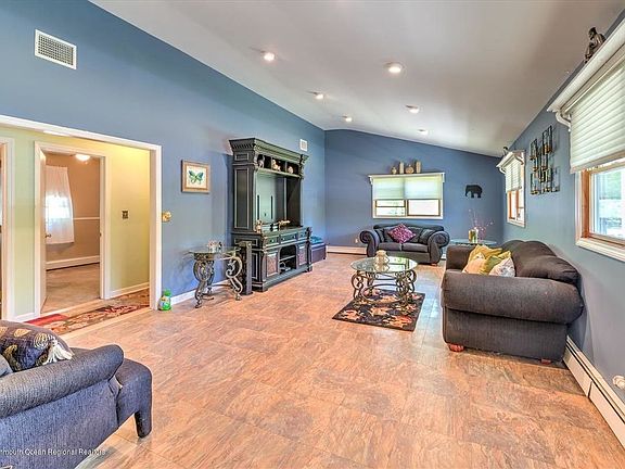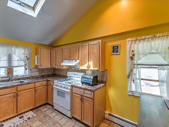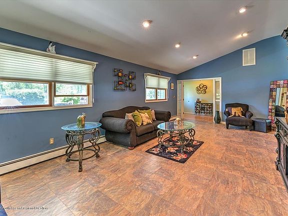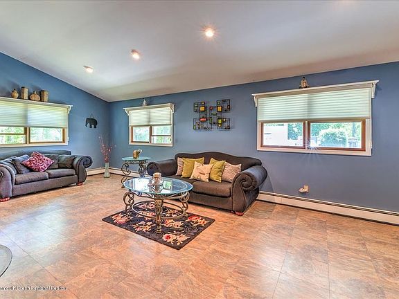 Desirable ranch home with 3 bedrooms & 2 newer full baths. Master bedroom has ensuite bathroom w/jacuzzi tub & separate shower. 2 additional bedrooms & full bathroom. Entertain in your 26 ft. great room addition w/vaulted ceilings & newer wood toned floors. Updated kitchen with maple cabinets, newer appliances, skylight and adjacent dining area. Laundry room/utility room as well. The spacious front porch addition is a great place to relax at the end of the day. There's an extra long & double wide paved driveway w/newer pavered front walkway. Newer quality white vinyl fencing surrounds the backyard which features a new/large pavered patio, grassy area and storage shed. Newer roof, Central A/C & Well. Conveniently located near major arteries, shopping, entertainment, NYC buses, etc