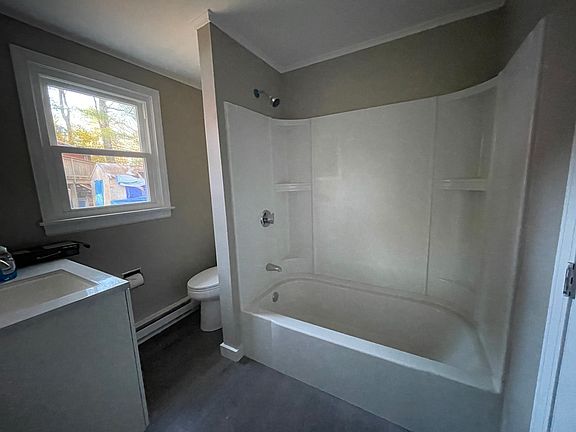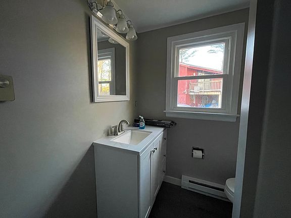 Newly updated apartment with fresh paint, new flooring, new appliances and new bathroom . Rent includes hot water, snow removal, and lawn care. Tenant pays for heat/electric, cable and trash. No smoking and no pets. Tenant shovels own walkway . Walking distance to the center of town, library, school and restaurants. The apt is located in a quiet neighborhood. No laundry but public laundromat in town very close for convenience. One year lease