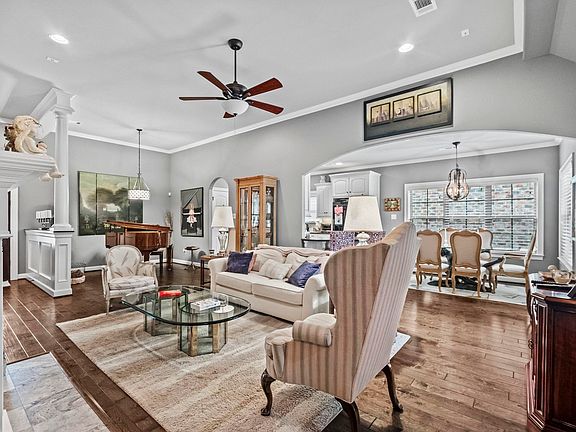 This remarkable home is located on Bishop Pl one way in and one way out! Lawns maintained and homeowners that take pride in their property! 3 bdrms 2 bths encased in this 1800 sq ft easy flow floor plan with split bedroom open floor plan. Ample room to entertain inside and out or cozy up to a gas fireplace for T V night! Kitchen equipped with fridge, dishwasher, microwave and gas stove and a nice size pantry makes this kitchen easy to keep stocked up on groceries. The entry way flows into living rm with a formal dining or music area which goes into kitchen and breakfast area. Covered back patio with a lovely grassy area along with some flowering plants gives you that "in the country feel" Double car garage with attic access for extra storage. Master bedroom has an ensuite complete with separate jacuzzi tub and shower, two vanities. Kitchen & baths have leather granite countertops for easy maintenance. Hand scraped wood floors through all surfaces except in the bathrooms which are tiled. Sprinkler system in front and back, security system throughout the home.