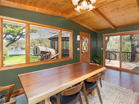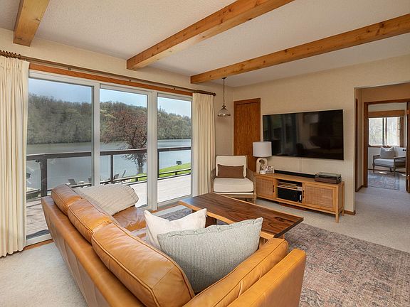 Lakefront Retreat with Stunning Views – 3 Bed, 2 Bath. Welcome to your perfect lakeside escape! This beautiful 3-bedroom, 2-bathroom home offers breathtaking lake views from nearly every room. The spacious living room features a cozy gas fireplace and sliding doors that open to a generous deck—ideal for relaxing or entertaining. The kitchen features solid surface countertops, stainless steel appliances, a convenient breakfast bar, and plenty of space for a large dining table—perfect for hosting family and friends. The master suite is a true retreat, complete with an ensuite bathroom and a private deck to enjoy serene mornings or peaceful evenings. Step outside to a beautifully landscaped yard with a walk-out lower level that leads to your private dock with a boat lift, a relaxing sauna, and a charming gazebo with electricity—ideal for outdoor dining, entertaining, or simply unwinding in comfort. Whether you're enjoying the water, the view, or the peaceful setting, this property is made for lakeside living. A 3-car garage provides ample space for vehicles and lake toys. Don’t miss this rare opportunity to own a slice of lakefront paradise.