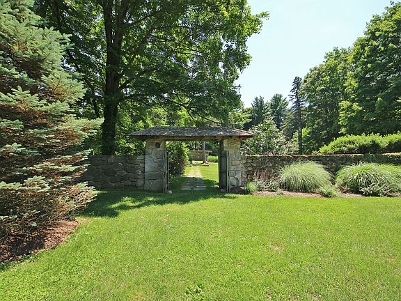 Spectacular 2006 custom post & beam shingle style home on most picturesque 2.43 private acres with in-ground pool, stone walls & patios, lush lawn & flowering gardens. Old world country compound including main home with 2,378 square feet, 2-3 bedrooms, & 2.5 baths; plus 2 additional structures with unlimited potential including 1,380 square foot pool cabana & 1,138 square foot guest cottage (both gutted/grandfathered). The main residence features casually elegant craftsman styling with beamed & vaulted ceilings; skylights; great room with antique oak floors reclaimed from the Ohio Valley; native field stone fireplace; & chef's kitchen with English tumbled brick herringbone floors, 1920s restored Glenwood gas range, & quarter sawn oak cabinets; 3 car garage; back up generator; propane forced air. So special!