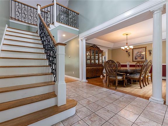 Gracefully set on 7.7 private acres, this exceptional estate was designed for those who live to entertain-and love to retreat. From its elegant architecture to its resort-inspired amenities, every detail reflects luxury without compromise. Inside, soaring ceilings and refined millwork frame a layout built for both grand gatherings and quiet indulgence. The formal dining room makes a statement with stately columns and a tray ceiling, while the gourmet kitchen is a culinary dream-anchored by premium appliances, a generous island, and an oversized walk-in pantry. Downstairs, the walkout lower level transforms into your own private resort, complete with a game room, home gym, and seamless access to the in-ground pool and patio-perfect for summer soirees or sunset unwinding. The primary suite is nothing short of extraordinary. A true retreat, it offers a spa-like bath, a massive walk-in closet, and a built-in washer and dryer that elevate daily living into a luxury experience. This is more than a home-it's a statement. A rare blend of privacy, elegance, and lifestyle that simply cannot be replicated.