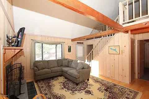 Discover the perfect blend of luxury and nature in this exquisite 3-bedroom, 2-bath rental. Surrounded by lush trees and natural beauty, every room is adorned with stunning natural wood. The lower level features 2 bedrooms, a full bath, a laundry area, a cozy living room with a wood fireplace, and a kitchen with a sliding door leading to a wrap-around deck. The second floor boasts a charming third bedroom loft and a second full bathroom. Recently renovated and cleaned, this home includes access to the Paupackan Lake and is just a short drive from local hiking trails. Only 2.2 hours from NYC, this is a must-see gem!