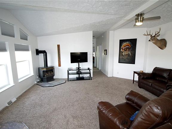 Beautiful 3 bedroom, 2 bath home on almost 10 acres with views of the Yellowstone River. Home has several great updates including new shingles and skylights, siding, windows, all counter tops, interior paint, water heater, LED light fixtures, treated-wood deck, window treatments, patio door and more. Property includes large 40'x48' pole building shop with electrical. Property has 2 high producing wells (1 irrigation, 1 domestic) and includes 6 shares to Old Mill Ditch. The land is conveniently fenced and crossed fenced with nice pipe fencing, making it great for horses. Modular home on a permanent foundation.