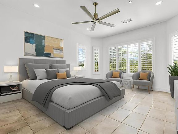 NEW PRICE. Now $879K! This tastefully upgraded Preserve plan in Del Webb Rancho Mirage is sure to impress. Boasting 3 bedrooms, 2 bathrooms, and a spacious 2,140 square feet of living space, this home situated on a west-facing view lot also offers panoramic mountain views. This luxurious design includes a 42'' modern entry door and 12''x24'' porcelain tile flooring throughout with 5.5'' base moulding. The kitchen features 42'' Brelin white cabinets, LUX package, and maple white quartz counters with custom glass backsplash and KitchenAid appliances. There is also a sunroom and covered patio with motorized zipper shades for outdoor entertainment. Additional features in the main living area include a wet bar with a wine fridge and a floor outlet. The owners' suite includes the bay window option and a low-threshold shower with custom flooring. With an energy upgrade, soft water plumbing loop, and both owned and leased solar already installed, this home is the perfect combination of modern convenience and beauty! Don't miss out on your chance to call this magnificent property yours - schedule a viewing today!