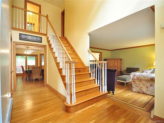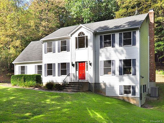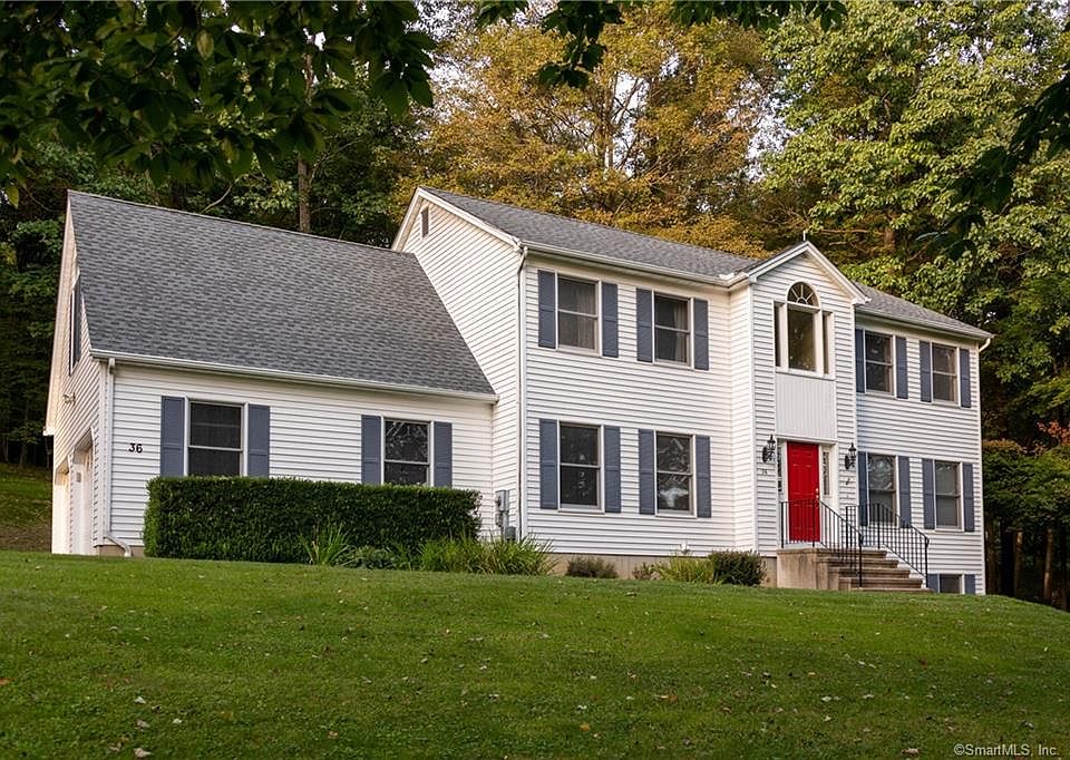 Search no longer! Tucked back at the end of a lovely cul de sac and in an ideal Southern New Milford location, this Colonial home fulfills the top of the wish list. The floor plan is open and the sun shines through. Pleasing upon entry, a 2-story foyer with high Palladian window highlights the easy-flowing main-level design. The brilliant foyer opens to a formal DR and LR featuring a wide casement opening to the adjoining FR and kitchen. The modern kitchen with island features warm honey-toned cabinets, quartz countertops and a sizable bow-windowed dining area. From the kitchen you can oversee and participate in the family room recreation and entertainment. A remarkable soft-toned brick FPL and oversized picture window draw you into this comfortable space. Hardwood floors, including walnut inlay in the DR & LR, further tie together the pretty and practical living space. An extra-spacious upper level features an exceptional front-to-back MBR with trey ceiling, bright sky-lit bath and walk-in closet. The 3 additional BRs include a versatile over-sized 4th BR/bonus room, great extra at-home work or hobby space. The well-finished LL includes a walk-out, above-grade office/den and a rec room ready for carpet. Oil heat. C/A. Attached garages. The yard is low on maintenance & high on natural beauty, with a private grassed and naturally screened front yard and back deck protected and decorated by a back drop of light woods. Quick & easy access to town, shops, schools. There is an Electric Vehicle charging outlet in the garage; There is a hookup for a portable generator in the event of a power outage