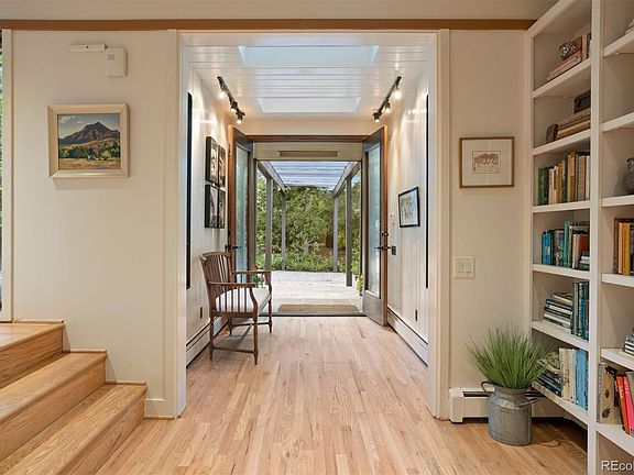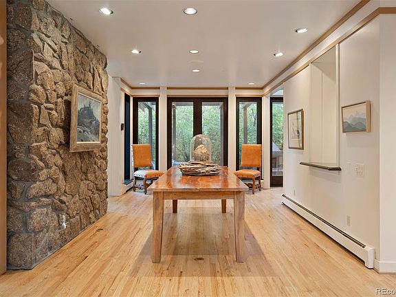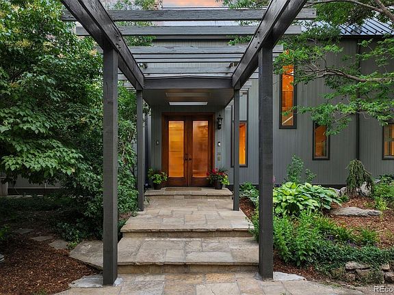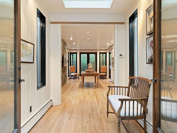 Welcome to the iconic “Lake House” in The Village at Castle Pines, a masterpiece of unique architecture. Located close to the main gate and overlooking the community pond maintained by the Metro District, this home offers an unparalleled living experience with walls of windows providing stunning water views. The expansive great room features soaring ceilings with exposed beams, a floor-to-ceiling stone fireplace, and panoramic views of the lake. Entertain in style in the formal dining room or the cozy kitchen eating space. Both spaces flow seamlessly to the deck to take full advantage of the waterfront. The gourmet kitchen is a chef's dream, boasting a large slab granite island, a 6-burner gas range, double ovens, a Sub-Zero refrigerator, a walk-in pantry, and a wet bar. The guest suite on the main level is a private retreat with its own kitchenette, fireplace, loft, and bath, with direct access to the lake. Upstairs, two luxurious primary suites await. The first suite features a floor-to-ceiling stone fireplace, a private deck, a lavish bath with skylights, a jetted tub, a dual shower, and mirrored wardrobes. The second suite, consisting of a bedroom and office connected by a glass-walled catwalk above the trees and includes a full 5-piece ensuite bath. The versatile basement offers a huge overflow closet with built-ins, an additional cedar-lined walk-in closet, a large flex space currently used as an additional bedroom, and ample built-in storage. A collector's dream, this home is adorned with endless bookshelves throughout, providing the perfect space for showcasing a treasured library or displaying prized collections. The outdoor space of the Lake House is truly one-of-a-kind, offering serene and picturesque views that are unmatched in The Village. Don’t miss the opportunity to own this spectacular home that combines style, comfort, and a prime location.