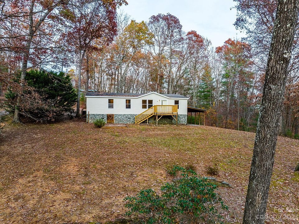 Mountain living is within your reach! This well-maintained manufactured home is tucked away in a secluded hollow in the Brushy Mountains of Alexander County. Home features an open floor plan with great flow, a spacious master bdrm & en suite bathroom, two walk in closets, & all the appliances remain. Vaulted living room/dining room boasts a cozy soapstone wood stove which adds to the mountain ambience. Enjoy wooded seclusion even though you are only minutes from Hickory, Taylorsville & Lenoir plus only an hour from the Charlotte airport. Thrill to mountain views, wild rhododendron, wild azalea, mountain laurel, and the sounds of nearby waterfalls from your front deck. All this on almost two acres of wooded land & with only one other chalet on your private shared driveway. Large lean-to for tools and toys. Relax with friends and family around your stone firepit & there is even a pad for your hot tub! You can have all this & not break the bank. This rare opportunity will not last long.