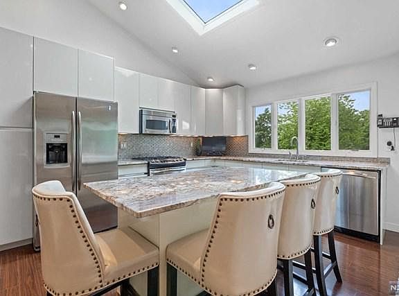 Stunning, beautiful and turn-key is this open floor planned 2142 sq ft bilevel. The tiled foyer leads to the cathedral ceiling living room and dining room with gourmet kitchen with glass tile backsplash, custom cabinets, SS appliances with granite tops and island. Open up to the multi-level Trex deck overlooking the fenced-in and manageable backyard with resort-like entertainment area and inground pool. The hardwood floored hallway leads to the mirror-walled full bath along with two bedrooms. The large master bedroom with a wall of closets has a master bath. The lower level with utility/laundry room and half bath has a sun-filled large den with fireplace and wall of windows, with access to the backyard. Everything has been done for you! Extra bonus- one of the few Oakland neighborhoods with sewers!