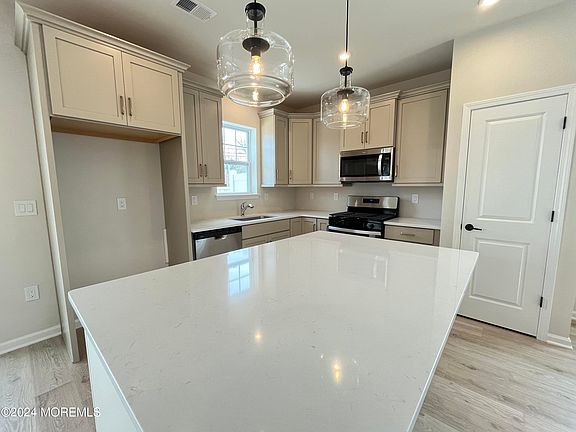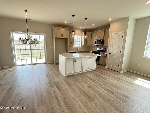 New construction rental close to the Jersey Shore. Perfectly located next to major highway entrances and a quick drive to the beach, this new construction Concord model features 3 bedrooms, 2.5 baths, downstairs office, an open family room, kitchen, and dining area with lots of light due to it's premium end unit location. Very spacious with 9 ft ceilings on both first and second floor. Luxurious primary bedroom suite with tray ceiling, ceiling fan, and walk-in closet, and double vanity bathroom.