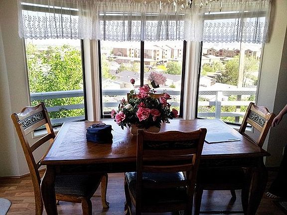 Expansive million dollar views! Views from the living room, dining room and deck. This is a very unique home with a great kitchen. There’s a fireplace in the living room for cozy winter days. All appliances are included. All 3 bedrooms are good size. The ceilings are vaulted and there’s wood flooring in the kitchen, living room and dining room. The master has a large walkin closet with built in shelving and a huge private bath with his and her sinks. Spectacular views from the huge wrap around deck; 2 car garage; landscaping. Privacy screens throughout. Lot Rent: 662/mo | Includes: Sewer