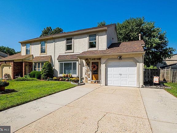 Welcome to this beautifully maintained townhome in the desirable Rainwood community of Voorhees. As you enter, you'll be greeted by a cozy foyer that sets the tone for the rest of the home. The spacious living room streaming with sunlight from the oversized bay window flows seamlessly into the dining area, creating an open and inviting space perfect for both everyday living and entertaining. Beautiful wood laminate flooring spreads across the foyer, hallway, dining room and great room. The kitchen is a chef’s delight, featuring beautiful silestone quartz countertops, white cabinetry and stainless steel appliances, including a dual fuel stove/oven that adds a touch of luxury and convenience. Adjacent to the kitchen, the great room with a stone wood burning fireplace as the focal point offers a comfortable retreat and easy access to the private backyard. A convenient powder room compliments this level. Upstairs, the primary bedroom is generously sized and boasts ample closet space, along with convenient access to an oversized hall bath. The luxurious bath features a huge jetted tub and a separate stall shower, providing a spa-like experience at home. The second bedroom is also spacious, featuring a walk-in closet, abundant natural light, and additional storage options. Additional amenities include an attached 1-car garage that leads into the 1st floor laundry room of the great room with convenient storage above via access from the pull down stairs, practical storage shed, newer hot water heater ('21) newer roof ( '22) ensuring peace of mind and reduced maintenance, ceiling fans and recessed lighting in all the right rooms. Enjoy outdoor living in the fully fenced backyard, which offers privacy and a serene setting. A charming patio off the great room is the perfect spot to enjoy your morning coffee, fun barbecues or just unwind after a long day. Freshly power washed, this home is in Move In Condition. This unique townhome offers a blend of comfort, style, and modern amenities in a sought-after location. Minutes from the corridors of Rts 73 & 70. Short commute to the Patco Hi Speedline train with easy access to Philadelphia. Abundant eateries nearby. Don’t miss the opportunity to make it yours!