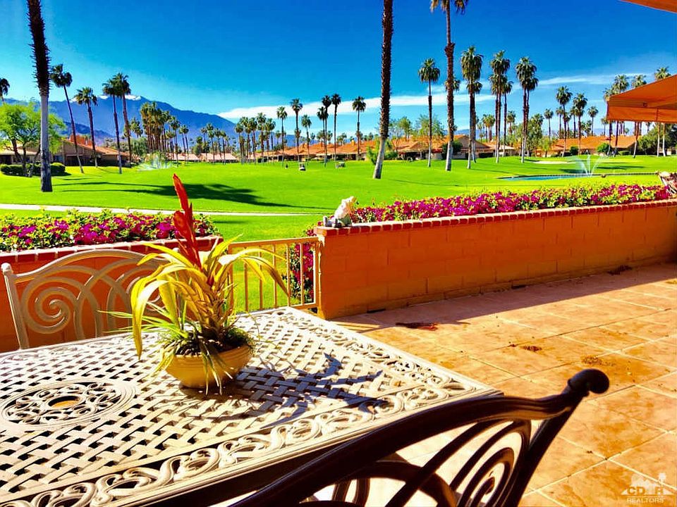 Fresh light floors and solar tubes add to the simple elegance of this bright and cheerful south-west facing fairway home. With sweeping views of the nearby mountains and serene location on the 15 the hole, this fully furnished home is move-in-ready. Open floor plan enables comfortable entertaining with large kitchen, dining room, fireplace, wet bar and large attached patio. An extended patio provides added ambiance and privacy for a morning cup of coffee. Master suite includes a large walk-in closet, double sinks and spacious shower. Secure and private, this home is an excellent value for those seeking a enjoyable and friendly Country Club setting.