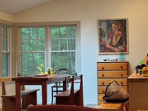 Lease available Oct 1 or later, and stay through as late as June 30. Minimum 5 months and up to 9 months. $2,495 including some utilities Oct 1-May 31, then June 1 - June 30 at a rate of $195/day with all utilities included. Ideal location right between Ellsworth and Blue Hill, easy commute to Acadia too! This spacious, woodsy retreat with ocean access is ideal for a family with home office needs. Internet is 300mbps (can be raised to 1gig). Lots of room for kids, and pets are fine. Triple heating systems: wood stove, propane and electric baseboards. One king master BR, 500sf with private balcony and toddler bed, 1 queen and 1 full BRs, kids' bunk room with 4x twin-size bunk beds and a full size bed. We are limiting occupancy to single families/couples of up to three adults, up to four kids and up to two pets. Open floor plan living/dining/kitchen/tv nook 1000sf has great flow. This 2,400sf house has private beach access down the lane overlooking Acadia/Mt. Desert Island, next town over from Blue Hill arts and food scene (7mi), and the other direction to the town of Ellsworth's shopping (5mi). Beach located just a short 300' walk down the private camp lane (the house is located on a little peninsula with about 15 others, providing an idyllic little enclave on Contention Cove, no public traffic). We have found it works very well to have a couple offices set up. Nice fire pit too! Flexible 5-9 month rental October-June, Tenant responsible for cable/phone if desired, electricity, propane, 300gb internet are billed to tenant against security deposit, and wood usage is up to the tenant to arrange (we have a good local supplier to refer). All snow plowing and any wood left over from the summer is included in the rental price. IMPORTANT NOTE: First month rent as well as $700/mo security deposit x number of lease months up to 7 due at lease signing (e.g. $3,500 security deposit for 5mo, etc.) wherein the security deposit will likely cover all non-included utilities throughout as well as a modest damage deposit/refund. The balance of all rent for the total period of the lease due before occupancy. Families/couples only, no roommate situations. These are pretty firm terms, though exceptional credit and high income ratio may allow for some negotiation on full rental payment upfront.