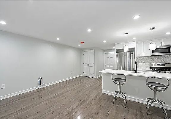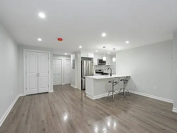 Charm, Convenience, Community! Welcome to this extraordinary garden level apartment centrally located in the much sought after section of Bushwick! You enter through the striking wrought iron gates of a beautifully gray stone paved front yard that leads to a private foyer that then leads into the main living space. Upon entering, the open layout allows for a stream of natural light to flow throughout the entire apartment. The kitchen features high-end stainless-steel appliances including a full-size dishwasher & french door refrigerator complimented by a stunning island with Corian countertops with overhead lighting! The extensive white shaker cabinetry is further complemented by an exquisite herringbone backsplash! The full bath can be found as you head towards the sleeping quarters, as well as the washer/ dryer setting smartly positioned away to the side. The two bedrooms are located towards the back of the unit & both provide a stunning view of the fully fenced private yard with a brilliant bluestone patio & garden setting! Don't miss out on this extraordinary opportunity!