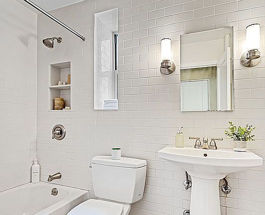 The large bedroom fits a king-sized bed and will accommodate an office area as well. The windowed kitchen features a dishwasher, microwave and plenty of upper and lower cabinet space. The renovated bathroom, which features convenient built-in storage nooks, is spa-like and serene.