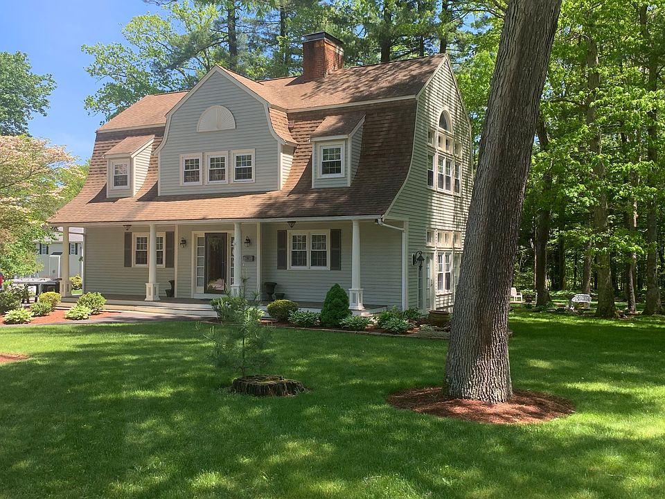 Every REX home comes with a 30-day buyback guarantee. Terms and conditions apply. Schedule your appointment with REX for a same day showing. Absolutely stunning 5 bedroom, 4 bath home with 2212 square feet in Holbrook! Mature trees abound and a beautiful façade creates fantastic curb appeal to this home in a park-like setting. Truly a showcase in every way with pride of ownership, the main floor offers a wood staircase with clean lines and an elegant feel, and an open layout is featured with a sunken living room that boasts a fireplace, hardwood flooring, crown moulding, recessed lights and ample space to entertain. The spacious chef's kitchen includes custom smooth surface counters, stainless steel appliances, tile backsplash, custom cabinets, counter seating, tons of windows that let in abundant natural light and pendant, recessed and under cabinet lighting. All of the bedrooms are tastefully appointed with generously sized closets, and the master feels like a retreat and comes complete with a high ceiling, demilune and other large windows, a fireplace, dual closets and an en suite bath that has a jetted tub/shower, custom wood cabinetry and tile surround. New tile floors are featured in the half bathroom. Updates throughout including new paint, chimney, water heater, storm doors, driveway, finished basement with kitchen, walkway and new window trim outside throughout the house. Separate laundry room. This will go very fast. Make this your next home! Schedule a showing with REX today!