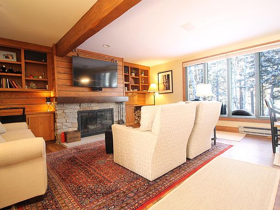 OPEN HOUSE CANCELLED....One of the best locations and layouts in all of WV! This 2 bedroom garden style end-unit has beautiful woodwork and cabinetry and offers a HUGE back patio, perfect for all season. Enter the condo to find a renovated mudroom space with gorgeous built-ins and bench, perfect for kicking off your boots and storing your gear. The living room has been beautifully updated with built-ins around the gorgeous stone fireplace. Just off the living area you'll enter the primary bedroom space with updated washer dryer and built-in cabinetry that perfectly match the flooring and updates in the living room. The primary bedroom is large and can easily fit a king sized bed. Having an end unit adds extra windows in the primary bedroom and kitchen, allowing plenty of natural light. The big bonus here is the patio... which is large and awesome for a firepit (allowed), grilling, outdoor entertaining and more. Make your own sledding hill luge right outside your condo! Village Condominiums has a great Recreation Clubhouse nearby with a brand new outdoor hot tub, in-ground pool and function space for Village Condo owners and guests only. On-site property management, maintenance and a front desk staff who will facilitate renting your property in their own short term rental program all makes ownership totally hassle free. 13 acres of common land, easy access to everything in WV... you'll love it here! (WMAC $900trf fee)