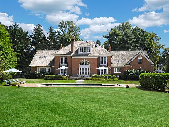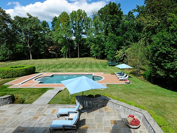 Gracious Brick Georgian Center Hall Colonial in Greenwich, CT running between Round Hill and Riversville Roads, nestled on almost five level and landscaped acres with pool/spa and plenty of green space. Exceptionally designed and detailed with a floor plan to accommodate formal entertaining as well as intimate family gatherings, this Greenwich home is a true delight for luxury living. A grand two story entrance welcomes you in. The kitchen and breakfast room open to the spacious two story family room. The first floor also provides a custom library, and a separate ensuite bedroom and family room. Upstairs you'll find the grand master suite, three ensuite bedrooms and a bonus room with bath. The third floor provides additional living space with a family room, office and bedroom with bath. Located in the private, coveted Sterling Road Association. Minutes to highways and shopping.