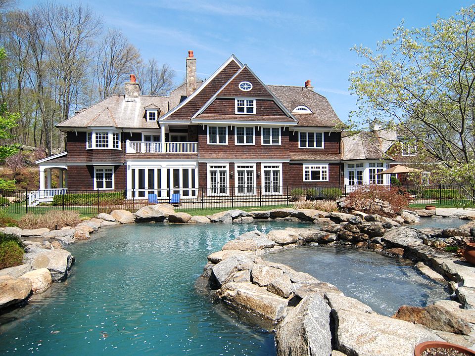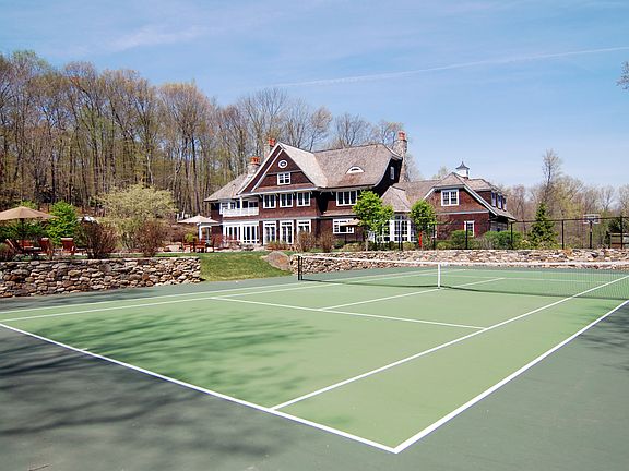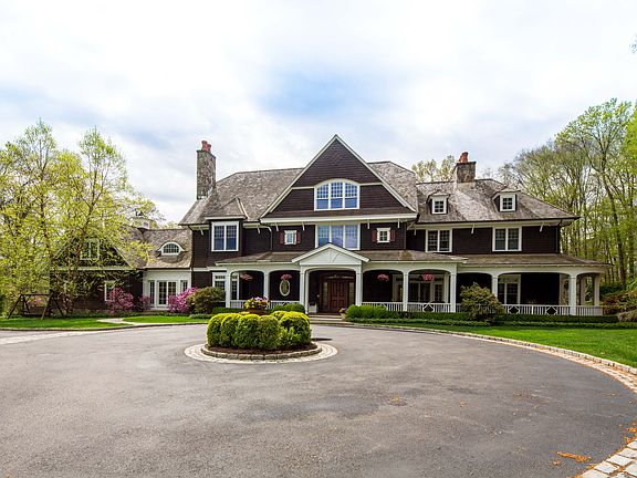 Bedford at its finest...your own idyllic & private retreat on 12.8 gated acres in a coveted location. Enjoy large scale entertaining both inside & out in this beautiful Stone and Shingle Newport Style five bedroom Colonial, designed by award winning architect Ralph Mackin. The home features the higest standards of craftsmanship with a newly remodeled kitchen, an incredible finished lower level with bar, wine cellar, billiards room & gym. The master suite boasts two walk-in closets & a large mahogany balcony overlooking the pool. A private nanny or guest suite & three additional bedrooms complete the home. Enjoy six fireplaces & radiant heated floors in the kitchen, mudroom & master bath. Outside features a one-of-a-kind stone & gunite salt water pool, a spa with 3 cascading waterfalls & a walk-in entry. Additional outdoor features include a sunken tennis court surrounded by natural stone walls, landscape lighting, a large stone patio, outdoor kitchen & a batting cage.