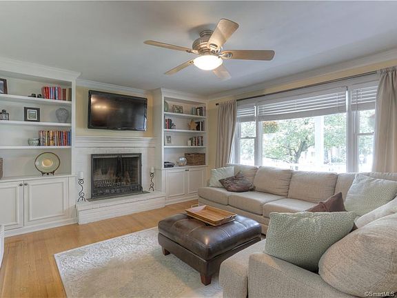 Walk in and feel the warmth in this welcoming home set in the friendliest neighborhood. This updated 5 bedroom Cape has it all from the inviting, covered open front porch and newer patio with privacy fence! Home offers beautiful updates and recent renovations to configure 3 bedrooms on the second level. Spacious eat in kitchen with bay window, hard wood floors, stainless steel appliances, Corian counter-tops and gorgeous tile back splash. Living room with custom built- ins, crown molding and fireplace make for a comfy room. Plenty of space in this large sun-drenched, freshly painted dining room with crown molding and hardwood floors. 2 bedrooms and a full bathroom (and laundry shoot) on the main level. Partially finished basement is tastefully done with solid built bar and great bonus room for the kids or adults! Master suite offers 2 closets, one is a large walk in, built in dresser, hardwood floors and full updated bathroom with tiled floor to ceiling shower. Sewer assessment is paid in full. Easy access to shopping, high rated school and convenient commute from a quiet fun-filled location. Enjoy all Trumbull has to offer including community pools, parks, hiking, biking and concerts. Disclosures and Improvement list attached to the listing!