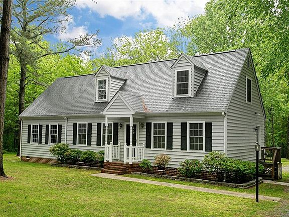 Charming Cape nestled on almost four acres in the quiet and established neighborhood of Manquin Farms. Beautifully updated with newer flooring, fixtures, fresh paint, new roof in 2014, new Anderson windows and Pella doors in 2017/2018, and new upstairs heat pump in 2018. The main house offers almost 2,000 square feet of living space with 4 bedrooms and 2 baths, including first and second floor masters, eat-in kitchen with solid wood cabinets and granite counters (fridge conveys), large family room with gas fireplace and access to the deck, plus spacious first floor laundry room (washer/dryer convey). The second floor also includes 340 square feet of unfinished space that could easily be finished into another bedroom, bathroom, or both! The detached garage offers 400 square feet of finished space with a half bath that would make a great office, man cave, or studio - you decide! The rest of the garage is oversized with 2.5 parking spaces plus room for a workshop. There is also a large walk-up attic above the garage. Enjoy your summer on the huge deck and above ground pool. You'll love the tranquil setting, and endless possibilities this property offers. Welcome Home!
