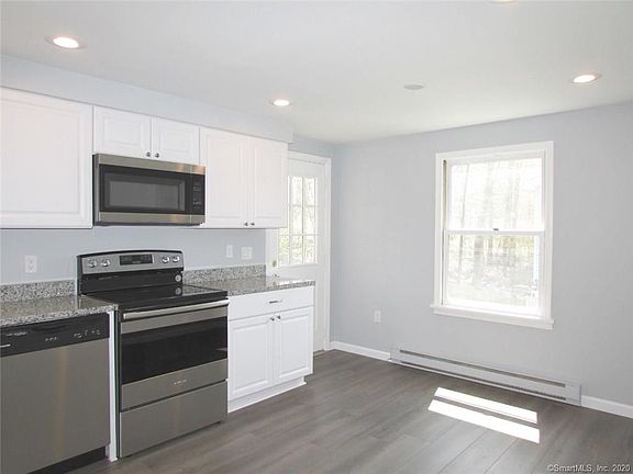 Completely remodeled, bright and spacious 2 bedroom, 1.5 bath half-duplex, with 1 car garage! The entire unit was tastefully remodeled and features brand new laminate flooring throughout. The main level has a spacious living room with bay windows, a gorgeous remodeled kitchen, complete with granite counters, stainless steel appliances, modern recessed lighting, plus a remodeled half-bath. The upstairs level has a large master bedroom with his and hers closets, a 2nd bedroom, plus a spacious remodeled full bathroom, complete with tub and shower. The large deck and low maintenance yard is great for entertaining, rest and relaxation! Includes brand newer stainless steel refrigerator, dishwasher, microwave and oven/range. Small pets negotiable for an additional fee at owner's discretion. Walking distance to Lowes/Big Y shopping plaza, local high schools, and just minutes to route 8, this property offers incredible convenience... WILL NOT LAST!