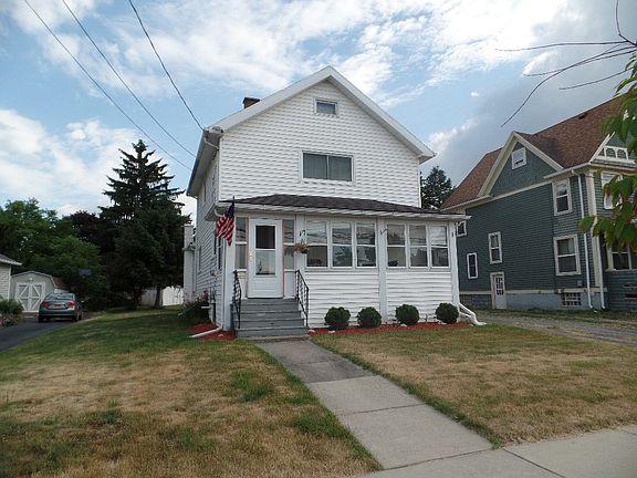 Updated home, move in condition. Updates include all new sunrise windows with lifetime warranty. High efficiency furnace, roof, electric, bathroom updates, light fixtures, floors, interior paint and more! Oversized backyard & huge 2.5 car garage. Wonderful enclosed front porch. 1st floor bedroom & half bath. Large dining/living area with eat-in kitchen too. Large upstairs bedrooms, closets galore. Walk up attic! The home you've been waiting for! This home offers the 100% Money Back Guarantee! Some restrictions apply.