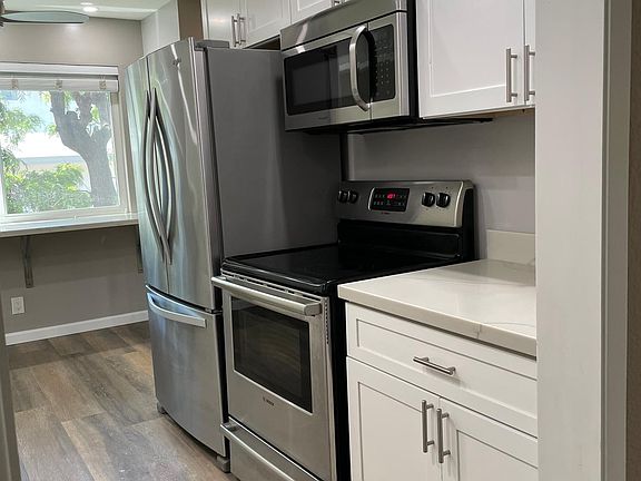 The beautiful Stafford Park area offers quiet streets, mature green trees, convenient access to El Camino Real, 101, or 280, and walking distance (13 minutes) to downtown Redwood City and public transportation. Hospitals, restaurants, grocers, boutique shops, entertainment, recreational parks and theaters are all conveniently located within a short distance. Home is just far enough away from the noise of downtown, but close enough to easily join your friends at one of Redwood City's great restaurants or night spots. Old meets New in this completely renovated and updated Mid-Century apartment building where each apartment home in this 16-unit community has been individually designed, renovated, and detailed. For those WFH individuals, this 960sf 1BR/1Bath with Den/Office (2BR/1B) immaculately clean, Back Corner, Northwestern exposure apartment offers the best of all worlds for the person requiring lots of storage and an at-home office. Located on the 1st floor, which maintains a slightly cooler temperature. Please email for an appointment. * $3,200 + Security Deposit * $35 Cash: fee required for EACH credit application submission * Utilities: You only Pay PG&E, Telephone, I/N * Gated Community, * One (1) Reserved Parking Space * Credit Card Operated Machines located next to elevator - 2 washers/dryers * Elevator in Building * Fiber Optic (Sonic) and Cable Ready * Small, 16-Unit Community * A Non-Smoking Community * Small Pets OK The Apartment: * Immaculately Clean * European Hardwood style Flooring w/Cork Underlayment * New Dimmable LED Recessed Lighting: Bright to Ambient installed throughout * Energy Efficient UVA/UVB Double Pane Windows * Electric Light Toggle Switches installed for ease of usage * Ceiling Fans (4 total) in DR, BR, LR, Den * New Electrical Outlets * Upgraded carpet and padding was added in the Bedroom. * Forced Air Gas Heat with Programmable Thermostat: Energy Efficient Gas * Large Private Balcony * Freshly Painted Storage: * Walk-In Closet: Cedar-Lined, 6' x 6' provides 12' LF of clothes hanging space plus shelf storage. * Vanity: An extra-large 2' deep Linen Closet was added. * Den: Spacious 9' Clothes Closet, and we added Built-In Shelving on both sides * Entry Closet: 4' LF hanging space and shelving * Living Room: has large built-in 3' wide wall shelving * Locker: Full Sized storage in garage for luggage, Xmas decorations, or Whatever The Kitchen, Bath, and Vanity: * Upgraded Kit. & Bath Fixtures & Calcutta Quartz Countertops * Kitchen and Bathroom Custom Quiet-Close Cabinets * All Quartz countertops * Built-In Dining Bar. All you need provide are stools! * Upgraded SS Energy Star Electric appliances: * Refrigerator, Range, Dishwasher, Microwave * Heavy Duty Garbage Disposal * Full Tile Bath * New Toilet 1 year