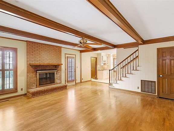 Spacious inviting home with ample storage. Remodeled in 2006 with downstairs hardwood floors, paint, kitchen cabinets and counter tops, plantation shutters, wooden blinds, ceiling fans, new dishwasher and microwave. Energy efficient windows installed in 2010. There are separate upstairs and downstairs central units, and two water heaters. Upstairs bonus room with built in bookcases, storage cabinets, 2 desks with bookcases and cabinets, 2 walk in storage areas and built in storage cabinets and drawers. Two of the four skylights in upstairs open. Upstairs office with built in desk, book cases and cabinets. Front and backyard professionally landscaped. Located within 1/2 mile of city limits. Rural fire protection available from City of Trenton.