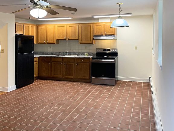 First floor, two bedroom (each with closet; one having a large walk-in) one bathroom apartment with hardwood floors, exposed brick chimney in living room / kitchen area, off-street parking, and storage on premises. Heat and hot water included. Close to Main Street shops and restaurants. Pets considered on a case by case basis. Good credit is a must (680 and above). No washer / dryer (laundromat across street). Tenant(s) is / are responsible for 1/2 month real estate fee.
