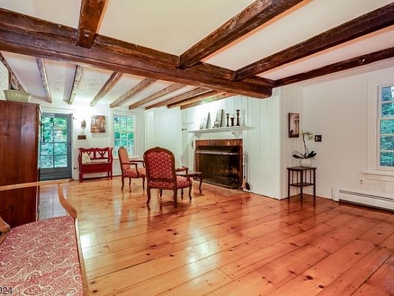 Begin the next chapter of your story in this 3 bedroom circa 1790 Colonial in heart of desirable Historic Brookside section of Mendham Twp. The rooms all honor the home's original integrity with the wide plank hardwood floors and beamed ceilings. The family room features finely crafted custom bookshelves, cathedral wood beamed ceiling and sun drenched windows with a touch of stained glass. The living room is graced w a charming wood burning fireplace. The master bedroom complete w walk-in closet, plus cedar closet and private full bath. The large country eat in kitchen offers a center Island, upgraded custom appliances, copper farm sink and separate dining room; Central Air, 2 Car detached garage with a large loft for office or studio. Yesterday's charm with today's modern conveniences.