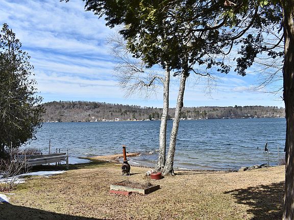 The water frontage is wonderful with an aluminum dock and nice beach with easy access to the water. Beautiful west facing sunsets over the lake from this property.