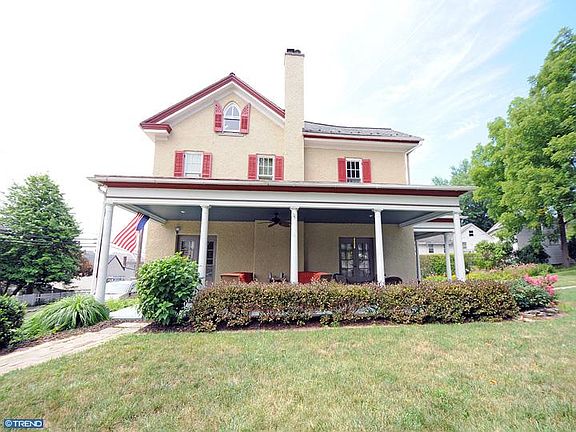 Proudly poised on a nicely landscaped lot, this lovingly maintained in-town Victorian has been updated and well appointed with all of today's conveniences and comforts while maintaining period appropriate style and character. Located in within a block of the acclaimed Sellersville Theater, historic Washington House Restaurant, and beautiful Lenape Park. This well-polished 1920's gem gleams brightly boasting original hardwood floors, trim work, doors, and hardware which have been meticulously maintained and refinished to preserve both beauty and integrity. Step up onto the fantastic wrap around porch, through either of three sets of restored double doors and into an over-sized living room with 9ft ceilings, twin cedar-lined coat closets, fireplace, handsome trim work, stately staircase and loads of natural light. Through a set of gorgeous french doors find the generously sized dining room with bay window and crown molding. A short hall brings you past an updated powder room, convenient built-in pantry and into the recently remodeled kitchen with stainless steel appliances, solid surface breakfast bar and cabinets galore. Upstairs find a beautiful full bath and 4 bedrooms filled with natural light and ample cedar-lined closet space. Large walk-up attic with new skylights is currently being used as home gym and offers the option of easily finishing to a master suite or game room. Waterproofed full basement has laundry, workshop, mechanical and storage rooms as well as walk out access to backyard. The breath-taking perennial gardens, EP Henry pull-through paver driveway, 50 yr. roof, recently added central air system, Baldwin Brass fixtures, Pella windows throughout and new water heater show upgrades abound. New LG front-load washer and dryer set are included as well as the fridge, and invisible fence system. 100% USDA financing is available. Also available for lease/purchase, Rental MLS# 6921267. Easy to show- Don't pass this one by!