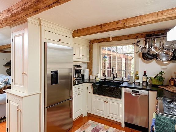 Hingham Center on 5 ACRES! On a majestic retreat lot, this storybook Cape has been completely renovated offering a perfect blend of antique charm and modern conveniences. With updated systems and beautifully finished kitchen and baths, the authentic design has been masterfully retained with quality craftsmanship. A warm and inviting fireplaced living room with dining area flows to en suite FIRST FLOOR MASTER. Three season porch overlooks the private backyard sanctuary. Your guests will enjoy the comfortable upstairs bedroom with full bath, laundry and sitting area. A new two story barn with two bay garage and storage; custom stone walls, beautiful gardens, brick patio, outdoor shower and plenty of parking space finish off this one of a kind country setting. Outstanding downsizer option. Conveniently located close to Commuter Rail, East Elementary School, Hingham Public Library, Hingham Square and Harbor. Move right in!