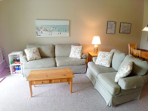 Here is the only 2nd floor garden style apartment for sale at the Ocean Edge Resort. This 2 bed 2 bath condo is almost 1000 sq feet and is positioned with a view of the 2nd hole out the back slider and the 5th hole out the front door. This open location allows for ample sun and breeze to circulate through. The unit features AC, tile kitchen floor and a low monthly fee. This property can rent for $1400 per week in the summer.
