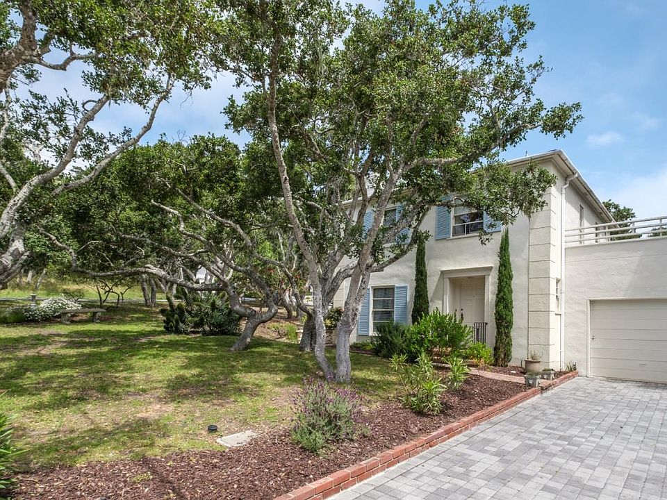 Live oaks on a quiet, end of the street lot provide a park-like setting for this French colonial home located in one of Monterey's more appealing neighborhoods. Historic Old Town Monterey is a 10 minute walk away; even closer are the walking trails leading to Veterans Memorial Park, yet privacy reigns on El Caminito Del Sur. Don't miss the tubular doorbell chime which greets one in the foyer, where the curving stairwell with wrought-iron hand-railing leads you to the upstairs bedrooms. The master bedroom boasts hardwood floors and his/hers walk-in closets. The main level features a kitchen with hardwood flooring and classic tiled counters of a by-gone era, with a new range and refrigerator.A formal dining room with French doors opens onto a delightful brick patio with benches warmed by a clean, gas fireplace. Please note the tallied water fixture credits offer the potential of adding a 2nd full bath. Knock and you shall find the door open to a rewarding home in a special neighborhood.