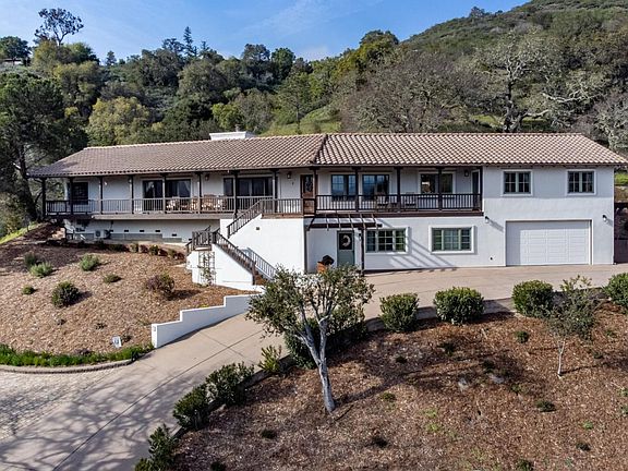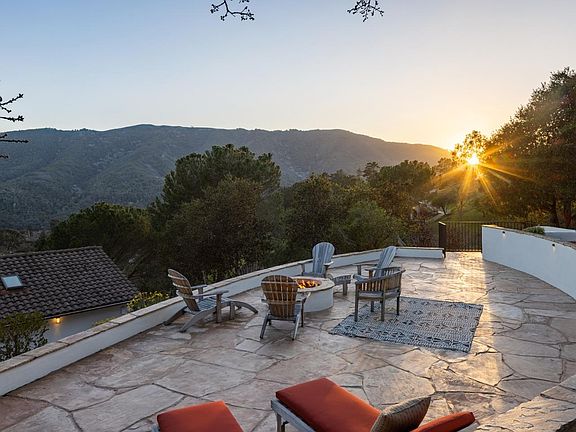 Sweeping, breath-taking views of the Santa Lucia mountains can be enjoyed from most rooms of this striking residence located in the sought after Miramonte neighborhood. Situated on 5+ acres this remodeled home captures outside living at its best with an extensive front deck, back patio, and an elevated rear patio to revel in breath-taking views and sunsets. The home itself offers an open floor plan, living room with fireplace, and dining area. The updated gourmet kitchen with beautiful counter tops and stainless steel appliances is a chef's delight! You'll love the spacious primary suite featuring amazing views, large bath with tub and shower, and walk-in closet. An added plus is the attached guest unit on the lower level with a kitchenette, bath and living areas. Extra water credits available for a guesthouse. Parking includes a 2-car garage and additional parking spots. The current owner has made considerable upgrades to this unique property and it just might be perfect for you!